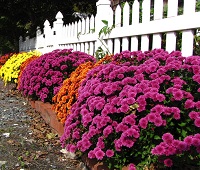 Fall Mums Chrysanthemums are a must-have for the fall garden. No other fall flower delivers as much color for as long and as reliably as good ol' mums. Mums liven up the fading fall garden with handsome flowers of nearly all shades and colors. Some varieties have daisy blooms; others may be rounded globes, flat, fringed, quill shape, or spoon shape. They work exceptionally well in container plantings and pots. Learn more about mums | |