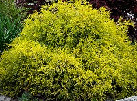 | October Plant Highlight Talking Gardening with Doug Chamaecyparis pisifera filifera ‘Golden Mop’ is better known by its’ common name – Gold Mop Cypress. Gold Mop Cypress is a needled, thread-leaf evergreen with bright yellow needles. Gold Mop Cypress is a beautiful plant that will add interest to any landscape because of its bright yellow color, and it is colorful year round. Here are some characteristic facts on Gold Mop Cypress | |