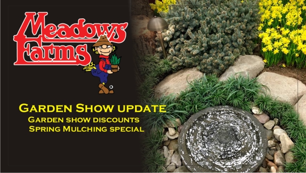 February 22-24 Friday - Sunday at the Dulles Expo Center Chantilly VA Enter the promo code MEADOWS to receive a $4 discount off the regular $12 ticket price. We look forward to seeing you at the show. Meadows Farms' garden is a regular feature of the show. This year will feature daffodils, fragrant hyacinths, and many other flowers, large evergreens, water and fire features, and custom stone work. Meet with our landscape designers to answer questions and to discuss plans for spring. Visit our display to pick up Show Special installation discount coupons. | |