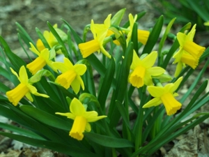 | Better late .... In January, there was widespread concern, though none in this garden, that daffodils grown three inches tall, with the worst of winter ahead, would surely be damaged by cold. Six weeks later, these have hardly grown another inch, though the start of flowers are visible on some. As is usual, the common 'February Gold' will not flower in February, though it is likely to be the first of several to bloom in this garden. The early flowering, that seemed inevitable weeks ago, has turned so that many late winter blooms will be delayed by a week or two. | |