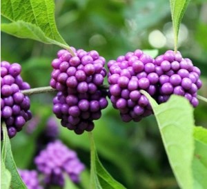 | Another seedling I am endlessly entertained (perhaps writing too frequently) by seedlings in the garden. No, I am not enthused by weed seedlings, their removal the reason for much of the garden's labor, but I am often fascinated with the unusual places that seedlings and sporelings (ferns) pop up. Most seedlings must be weeded out and discarded because there are too many, or the placement doesn't work (in the middle of a pathway), but others are allowed to grow or are transplanted. Earlier this year I noticed long branches arching out from under an Okame cherry and over the top end of the koi pond. Not a seedling that had just germinated, but hidden in the clutter until now. At the time, I guessed that the nondescript leaves were of beautyberry (Callicarpa), but now the identity can be confirmed. | |