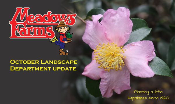 October is Bat Appreciation Month. Bats have gotten a bad rap over the years from writers of horror fiction, but they are actually good guys. They are not only pollinators but an outstanding source of pest control. Here are some cool facts about these fellow mammals. | | | | Locally Grown Fresh Cut Sod $7.99 for 10 sq. ft. Roll (5'x2') Meadows Farms Nurseries stocks fresh certified fescue sod. We receive new pallets of fresh sod every week from local sod farms. For large orders of sod visit or call your nearest Meadows Farms location and we will be happy to make a special order. Read more about planting a new lawn using sod | | | | | One Secret to Finding Joy in Gardening Garden Time with Doug There are many joys with gardening. For many of us, the number one joy is being able to enjoy having color in our gardens or containers year-round. We are fortunate to live in a state (Zones 6 – 8) that is temperate enough to allow flowers to be planted and enjoyed all twelve months of the year. Here we are in entering the last days of October. We are now having more seasonable, fall-like temperatures. It's time to plant Fall and Winter interest flowers. Read more from Doug | | | | Fall Lawn Care With the heat of summer behind you, it is time once again to start looking forward to the satisfaction that comes from having a lush green lawn. Whether you are starting from scratch or hoping to add new life to a tired lawn, a few basic pointers will start you on the road to success. In most cases, fertilizer, lime, and water will be the only ingredients you will need. However, if 50% of your lawn is brown or dead, you should renovate the entire area including dethatching and aeration. Regardless of the condition of your yard, it is never too late to go for the green! See our monthly Fall Lawn Care checklist | | | | | | | | | | Discounts apply to VIP customers only. Products may not be exactly as shown. Availability will vary by nursery. We reserve the right to limit quantities and to correct any unintentional errors that may occur in the copy or in illustration. While supplies last. Prices in this email are in effect October 31 - November 3, 2019 and are thereafter subject to change without notice. Prices not valid on landscape or grounds maintenance installations. | | |
